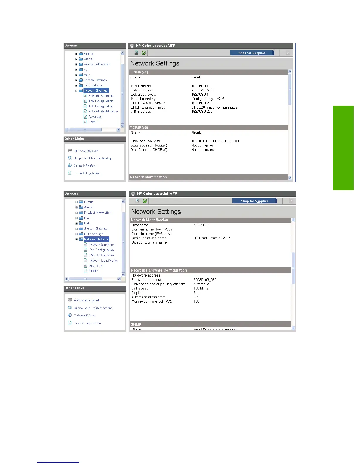 Figure 2-61 HP ToolboxFX Network Settings folder (1 of 4)