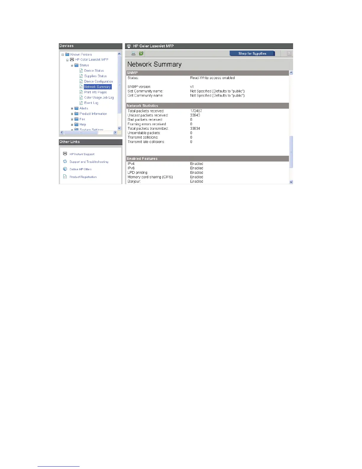 Figure 2-67 HP ToolboxFX Network Settings folder – Network Summary pane (3 of 3)