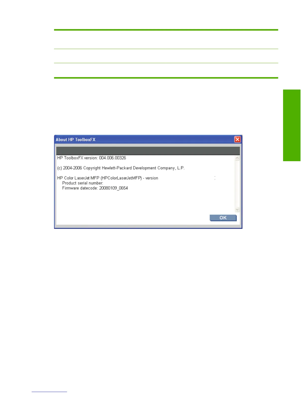 About HP ToolboxFX dialog box
