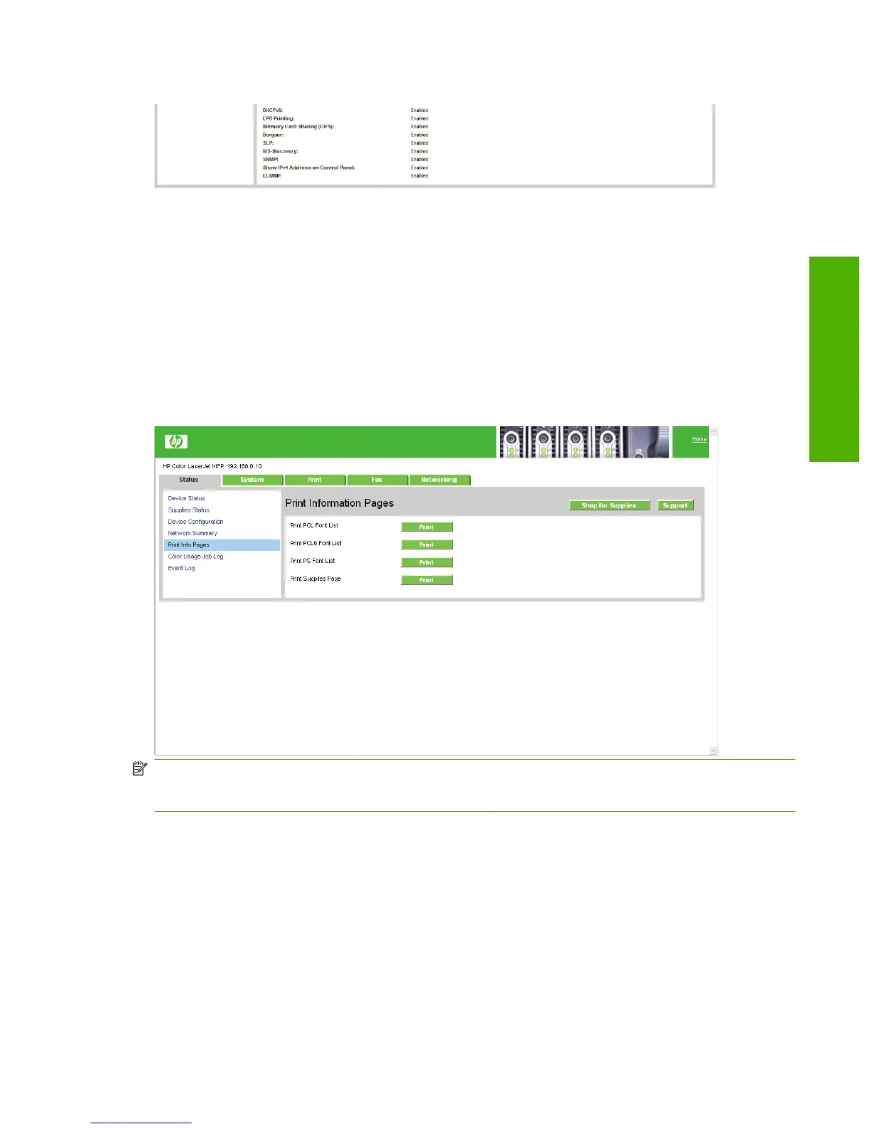 Figure 2-86 HP EWS Status tab – Print Info Pages page