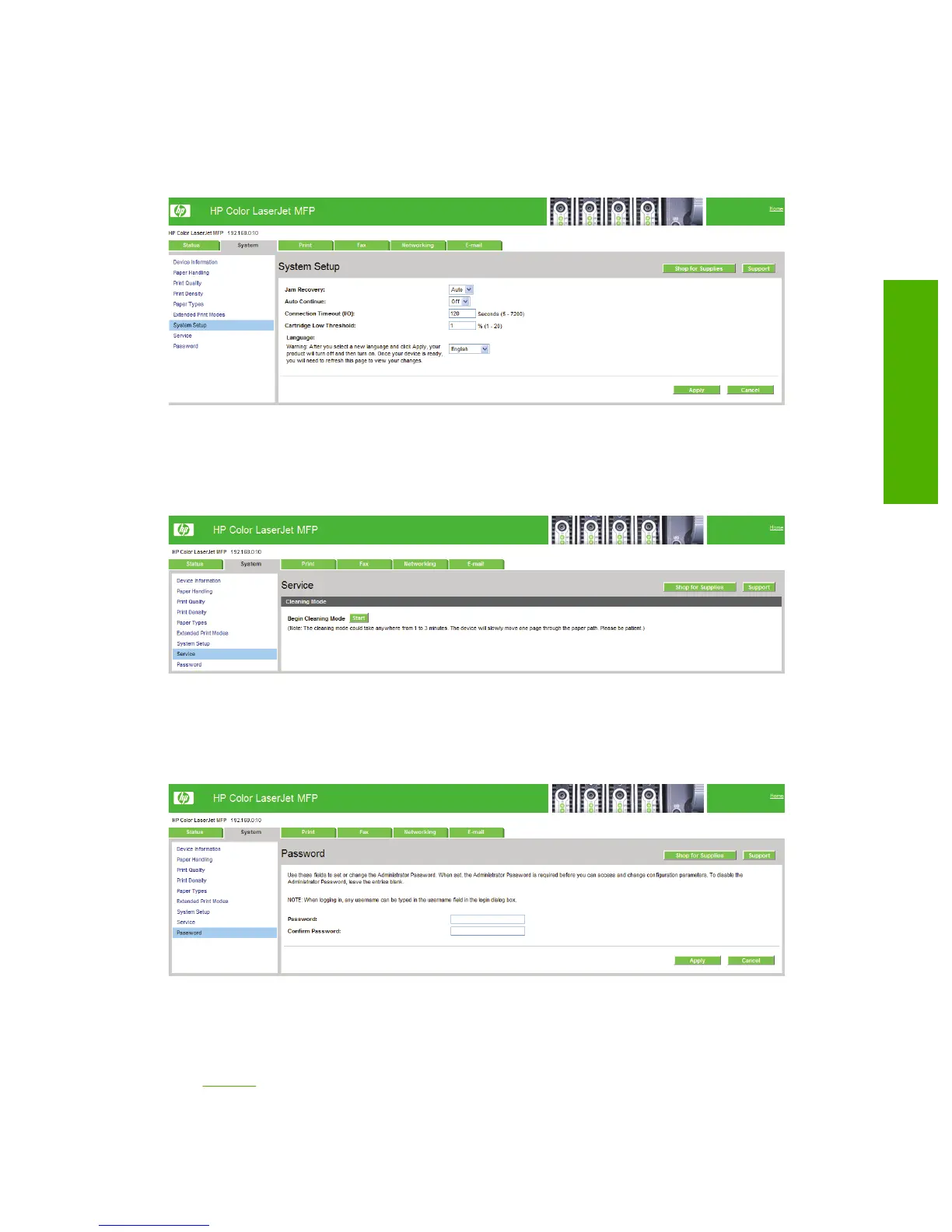 Use the System Setup page to change settings, such as Jam Recovery and Auto Continue, on the