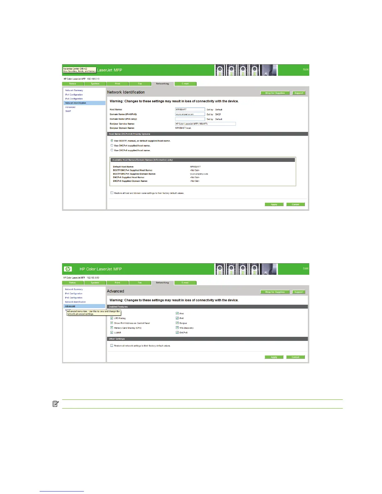Figure 2-109 HP EWS Networking tab – Network Identification page