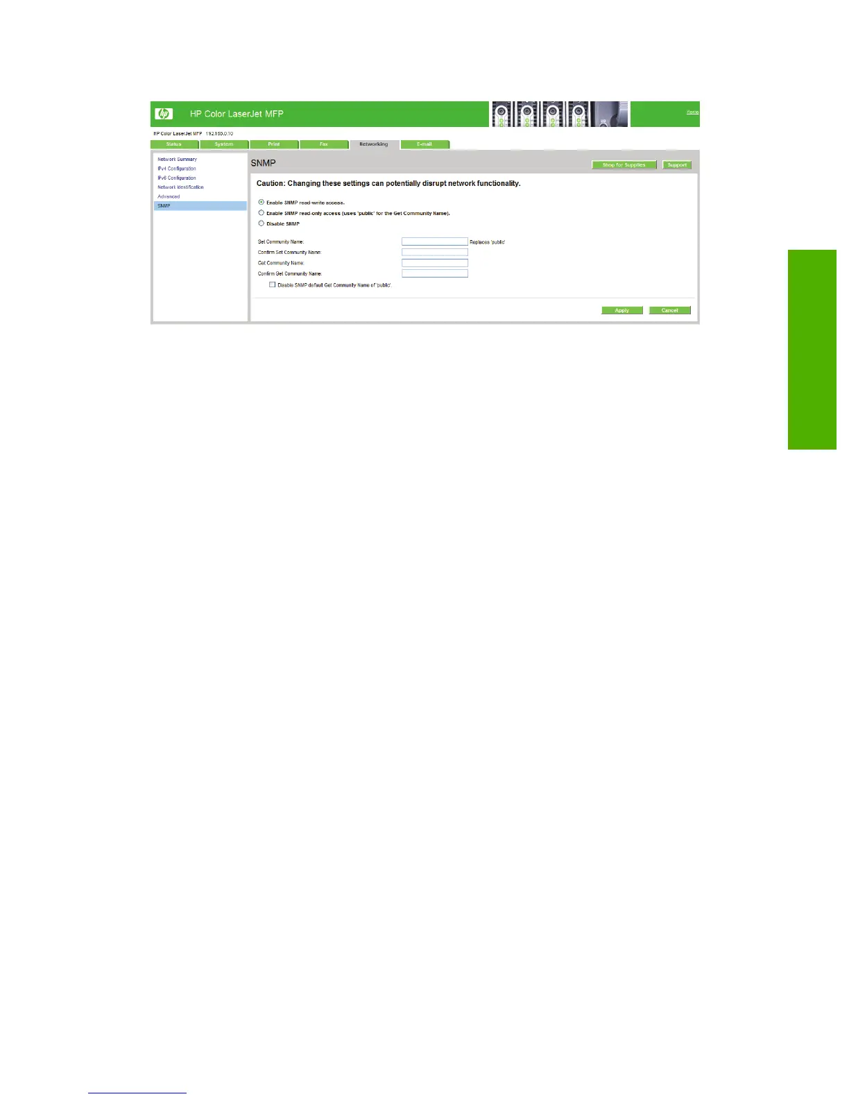 Figure 2-111 HP EWS Networking tab – SNMP page