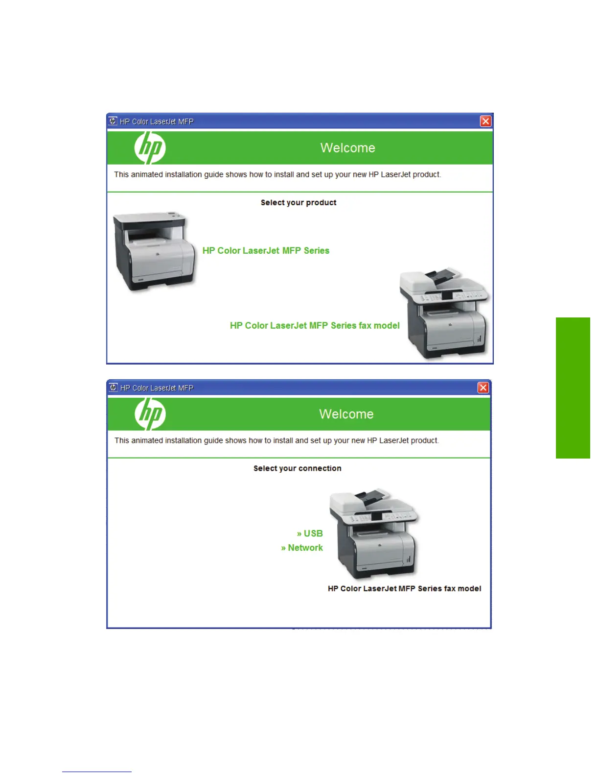 Figure 3-2 Animated GSG – Select your connection screen