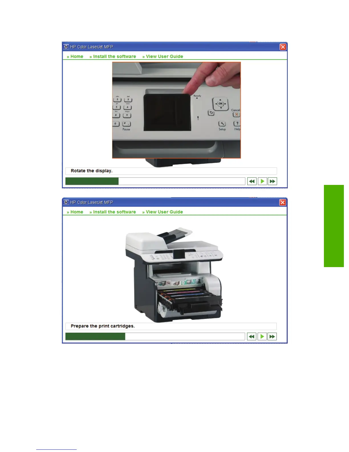 Figure 3-10 Animated GSG – Prepare the print cartridges screen