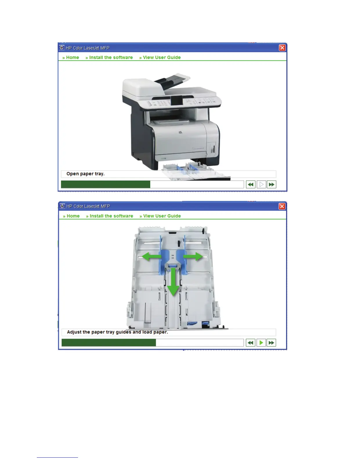 Figure 3-12 Animated GSG – Adjust the paper tray guides and load paper screen