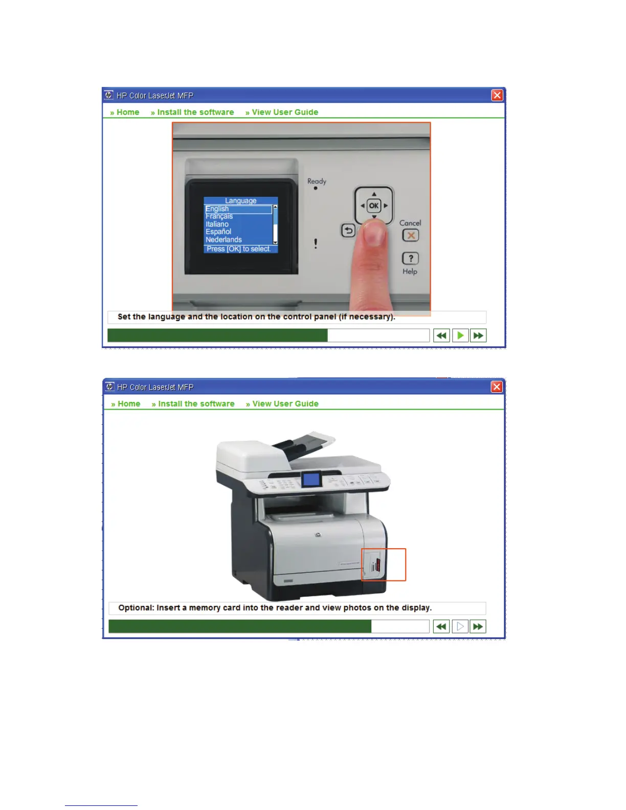 Figure 3-19 Animated GSG – Set the language and the location on the control panel (if