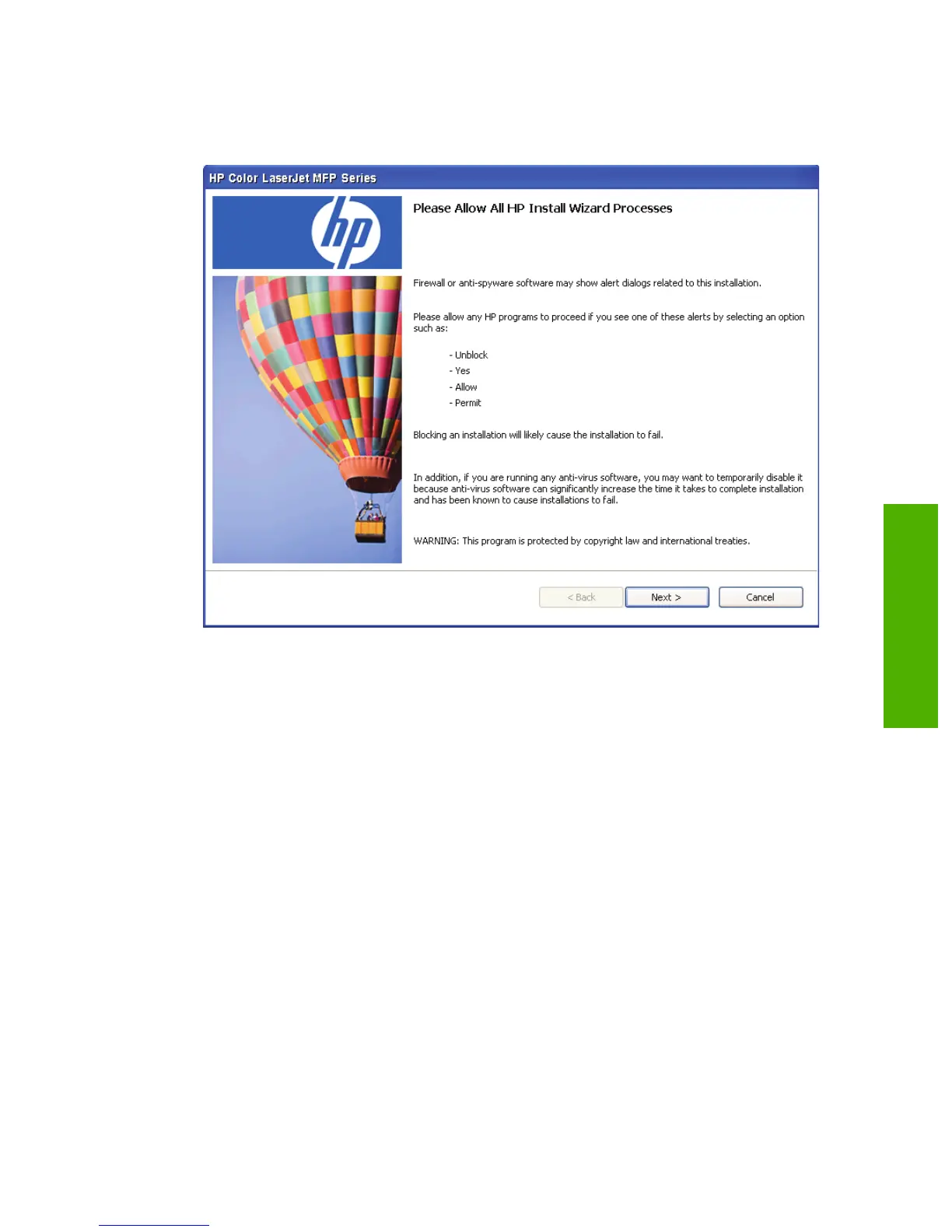 4. When you click Recommended Install, the Please Allow All HP Install Wizard Processes