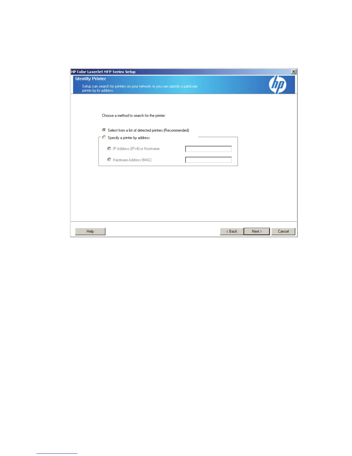 (Recommended) or Specify a printer by address and type the address of the product in the field