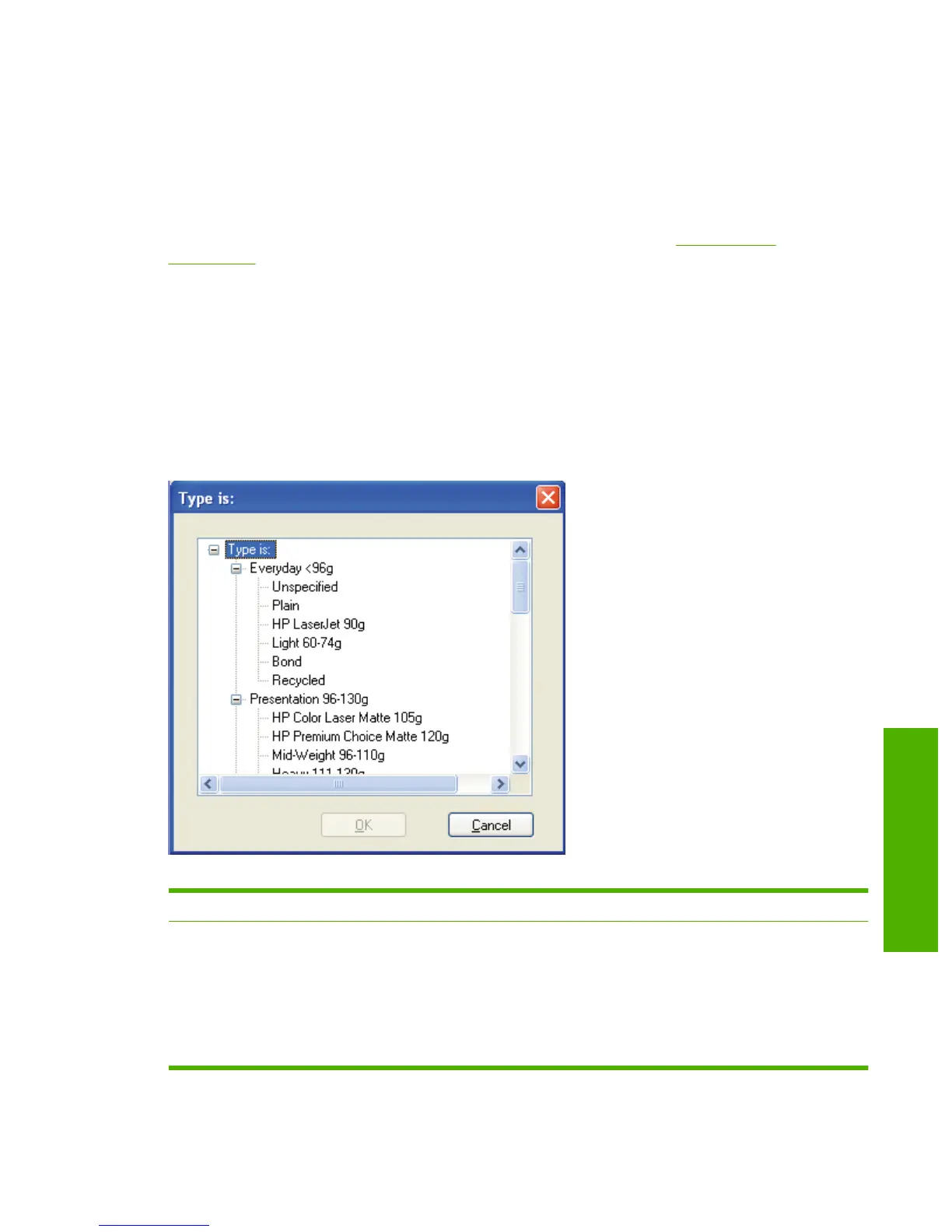 is: box opens. Select one of the additional paper types and then click OK. Now this option will be