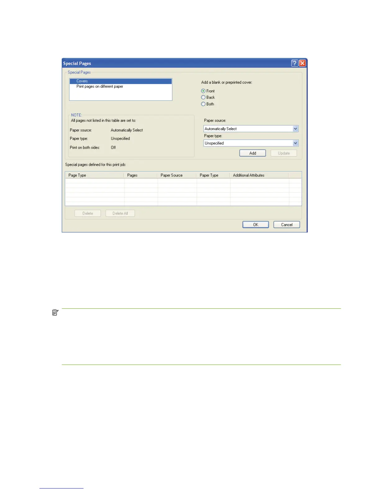 Figure 4-7 Paper/Quality tab – Special pages – Covers