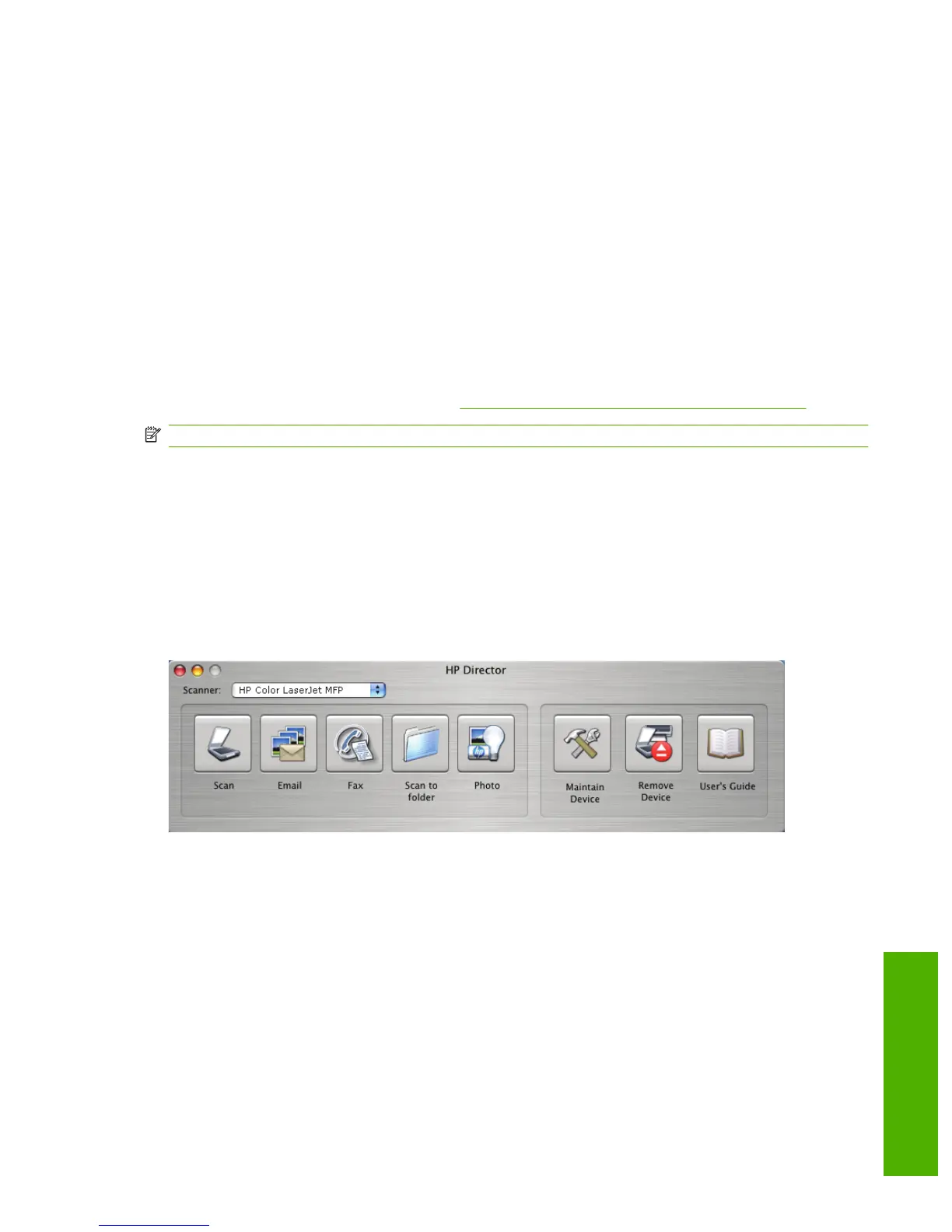 To open HP Director, go to the Applications folder, open the HP LaserJet MFP folder, then open the