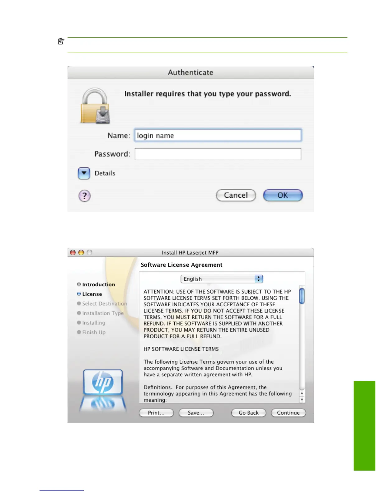 Figure 5-9 License dialog box – HP Software License Agreement