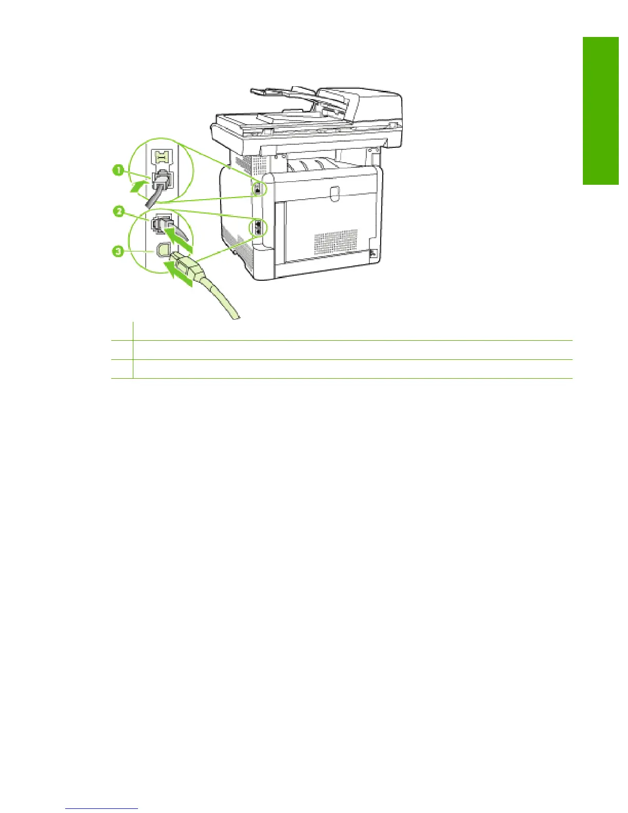 1 Fax ports (HP LaserJet CM1312nfi MFP (fax/photo-card model) only)