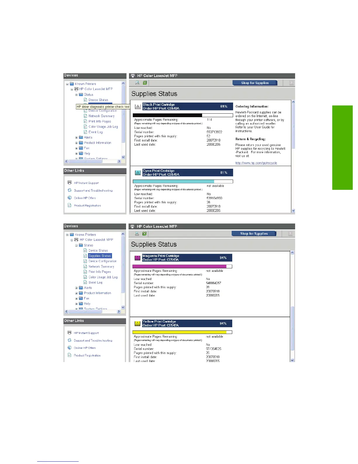 Figure 2-7 HP ToolboxFX Status folder – Supplies Status pane (2 of 2)