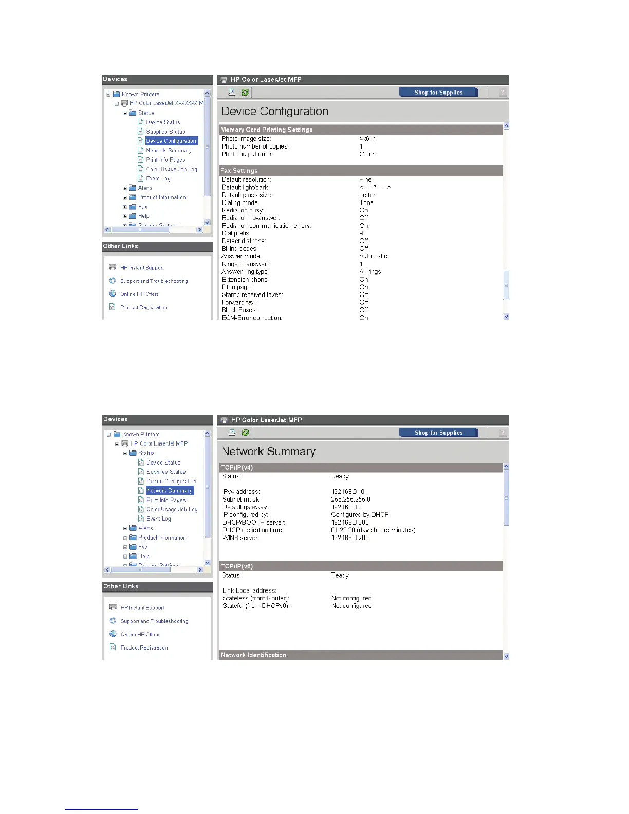 Figure 2-13 HP ToolboxFX Status folder – Network Summary pane (1 of 3)