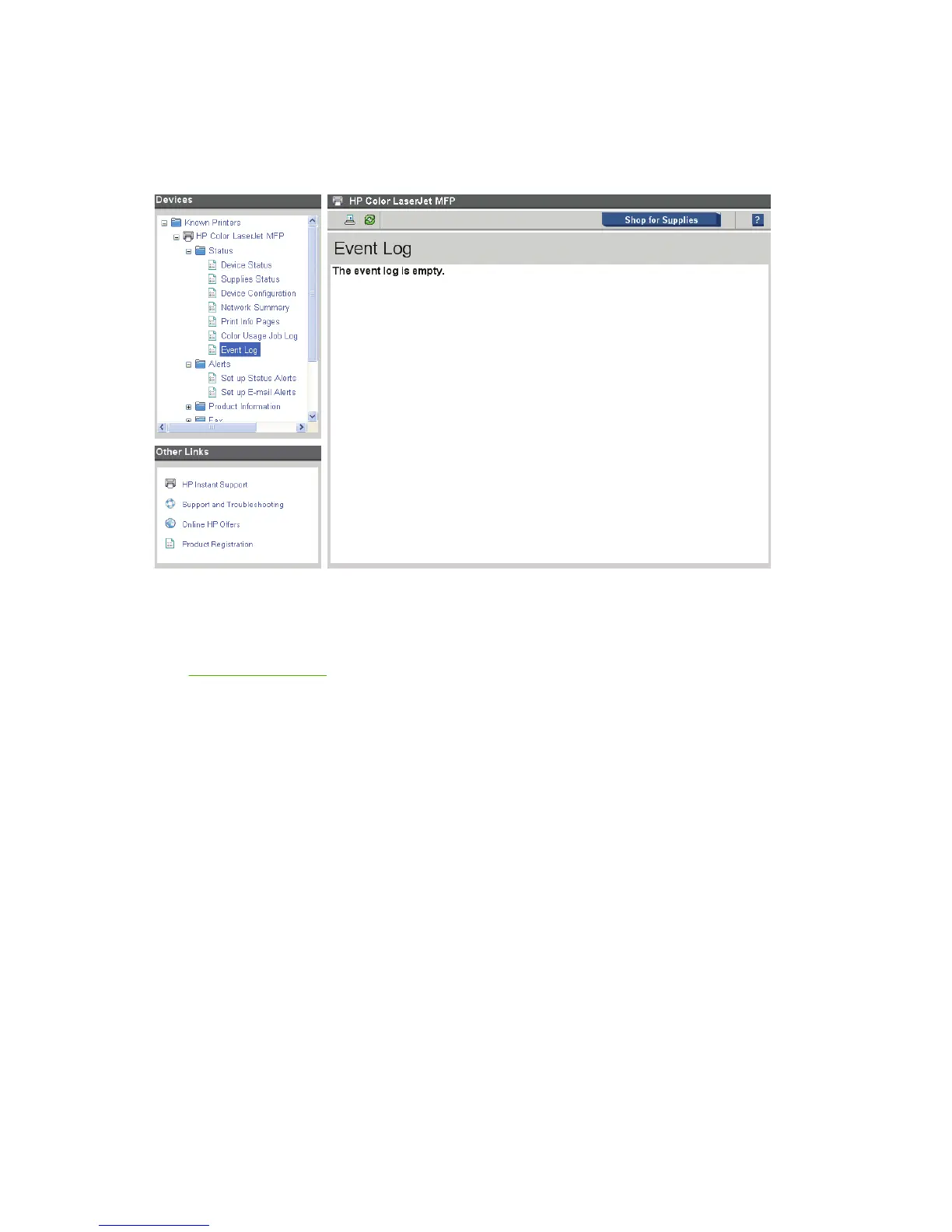Figure 2-18 HP ToolboxFX Status folder ā Event Log pane
