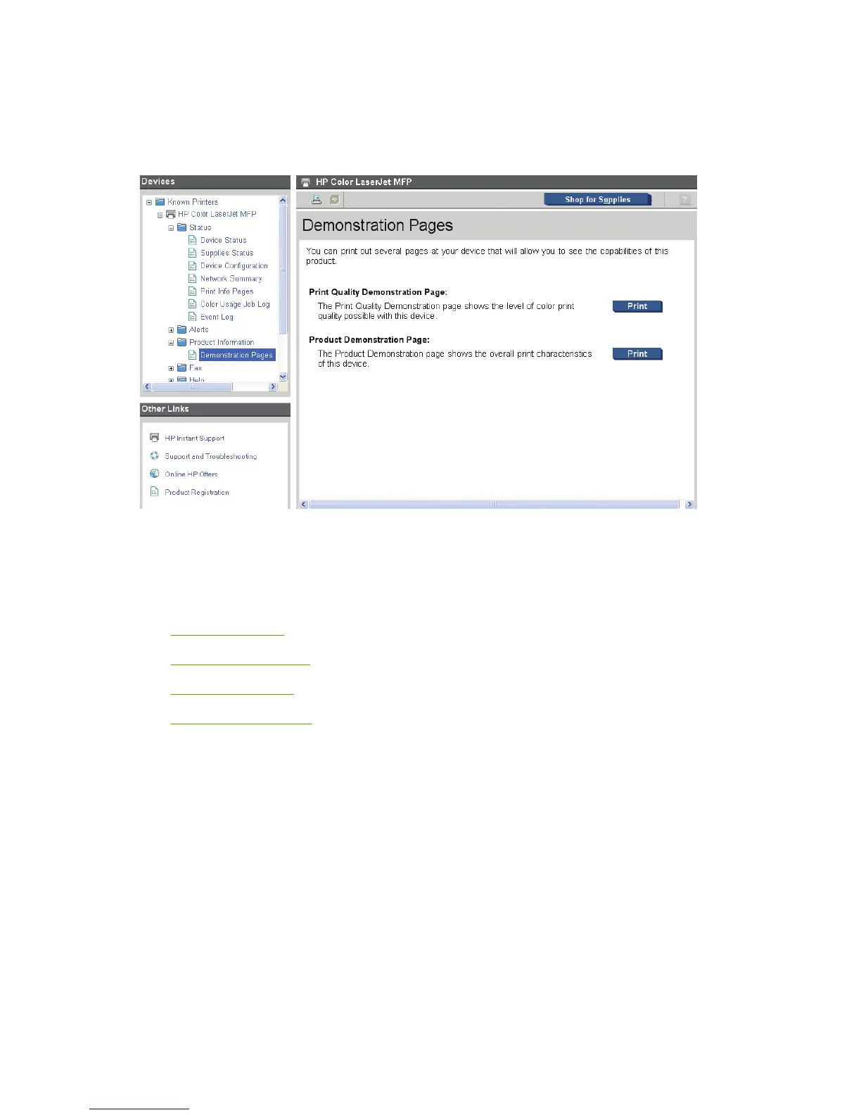 Figure 2-25 HP ToolboxFX Product Information folder – Demonstration Pages pane