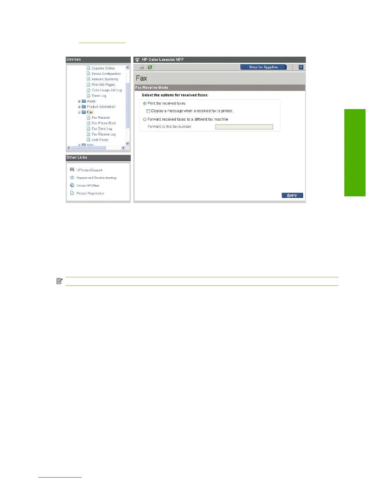 Forward received faxes to a different fax machine. If you select this option, you must also type