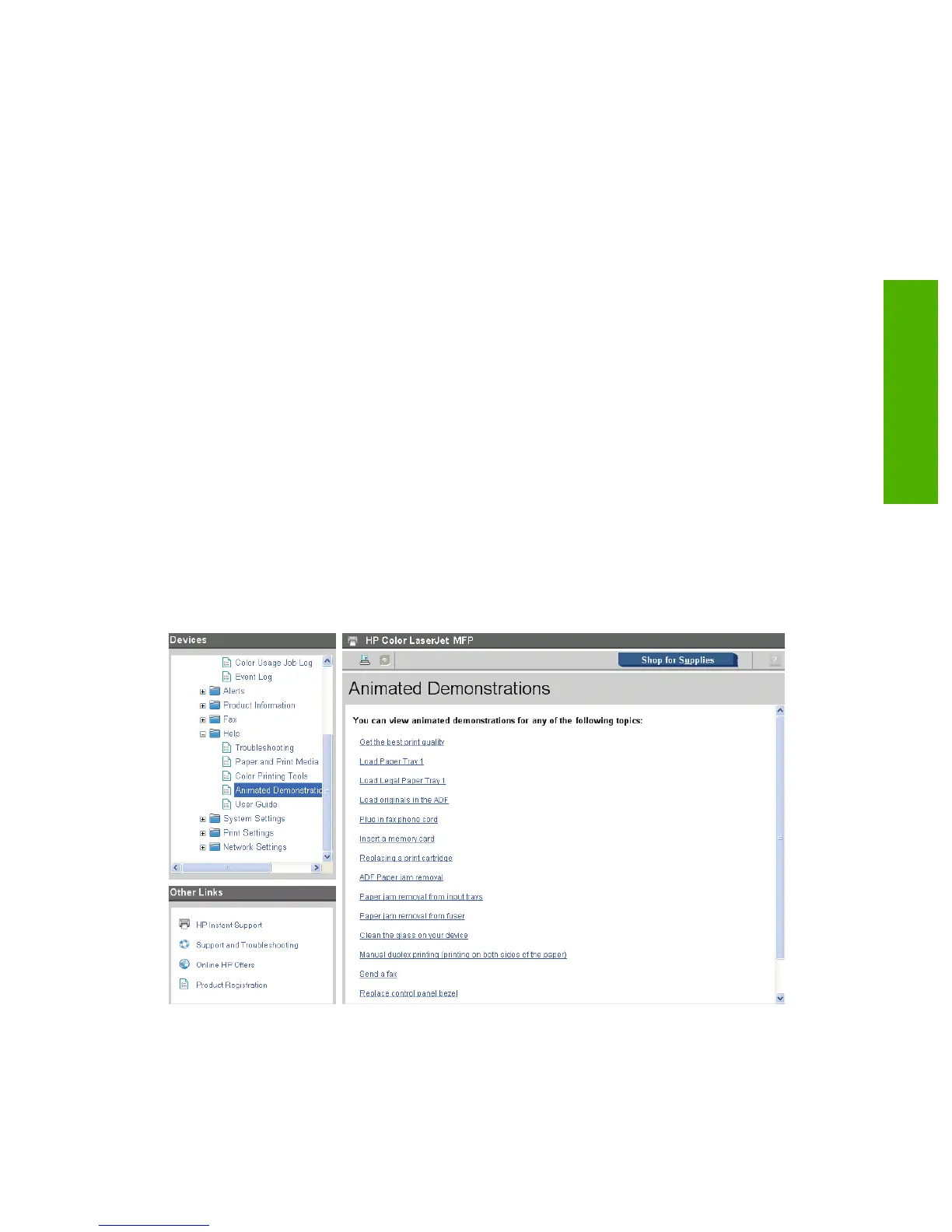Figure 2-38 HP ToolboxFX Help folder –Animated Demonstrations pane