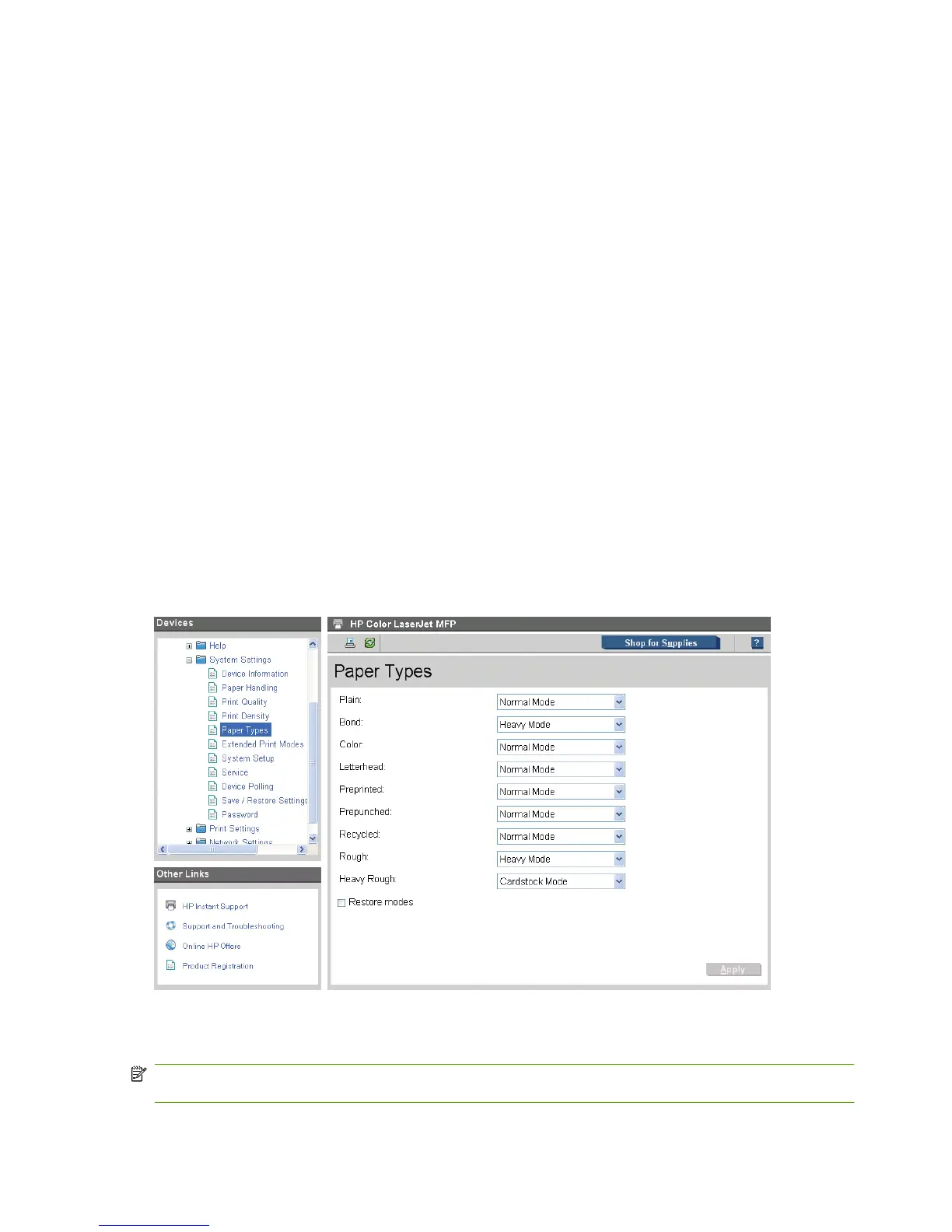 Figure 2-45 HP ToolboxFX System Settings folder – Paper Types pane