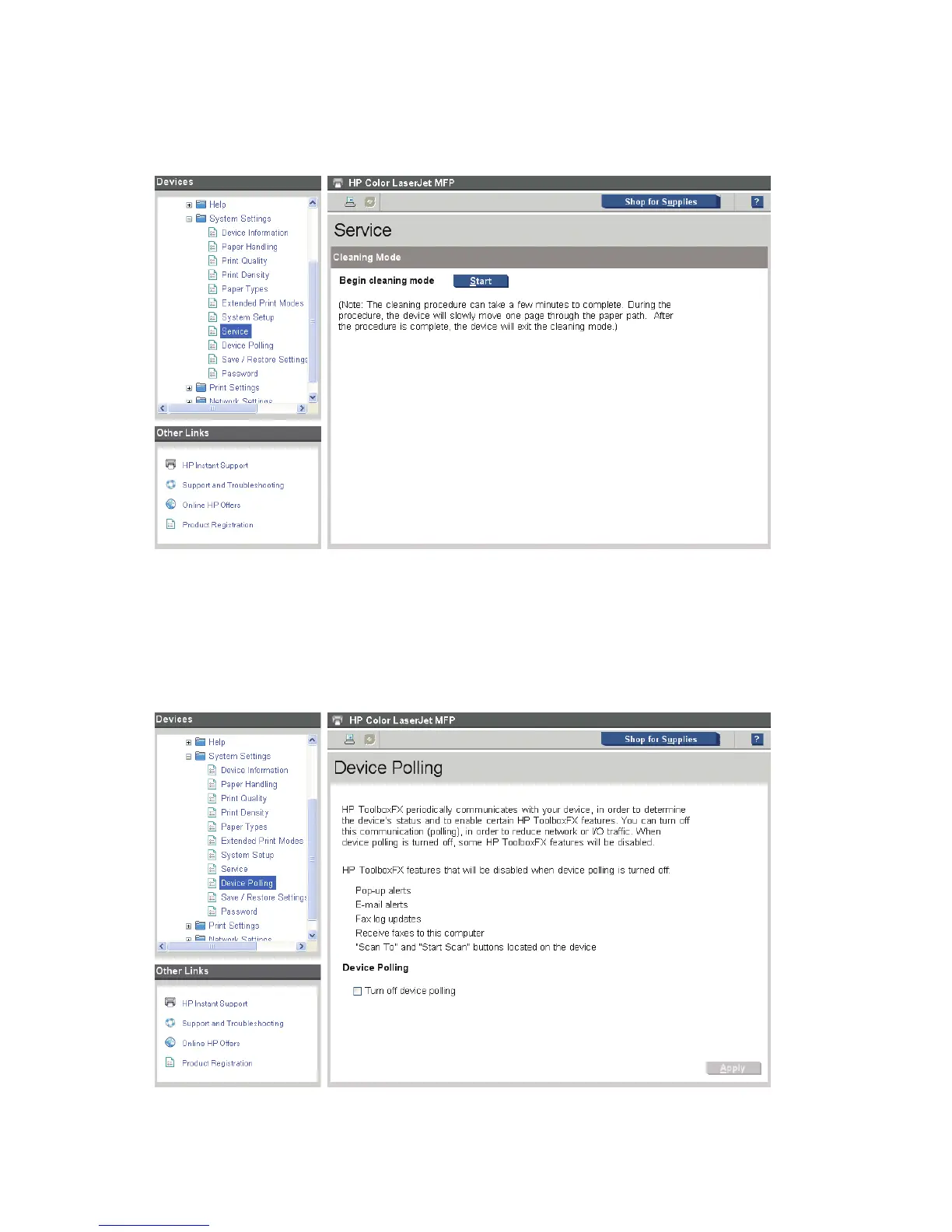 Figure 2-53 HP Toolbox FX System Settings folder – Device Polling pane