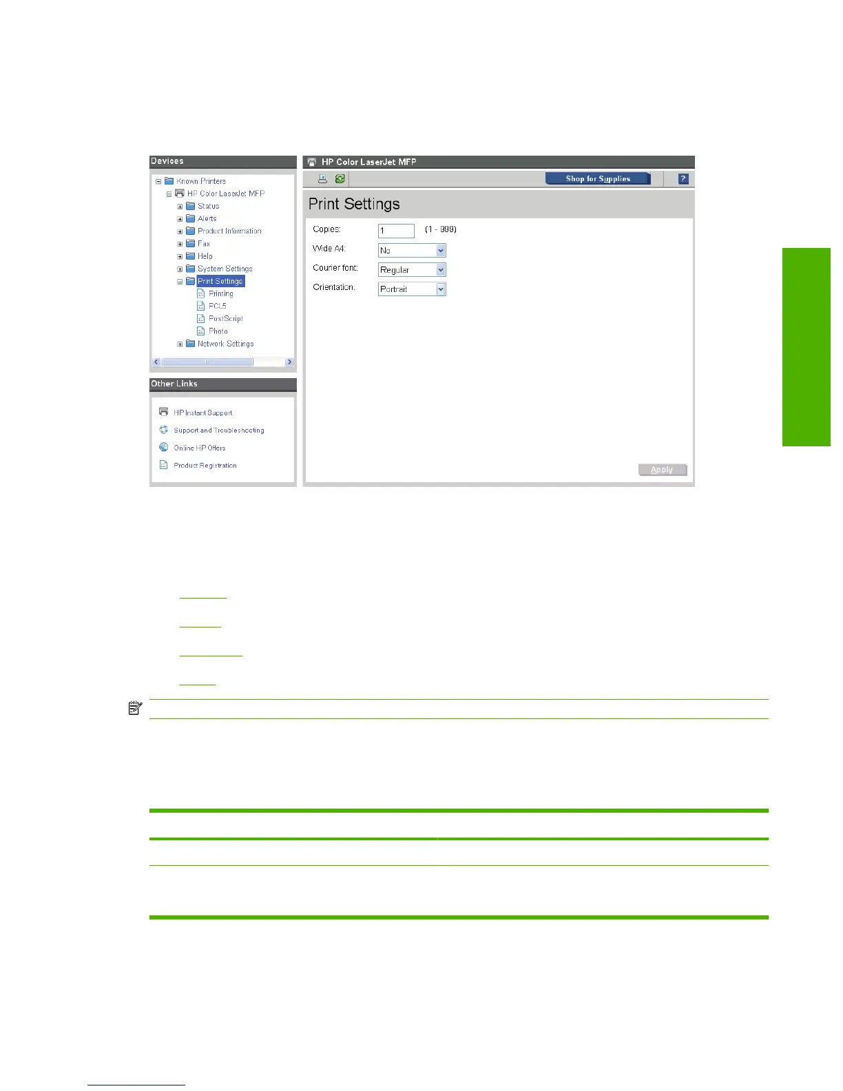 Table 2-6 Printing options and settings