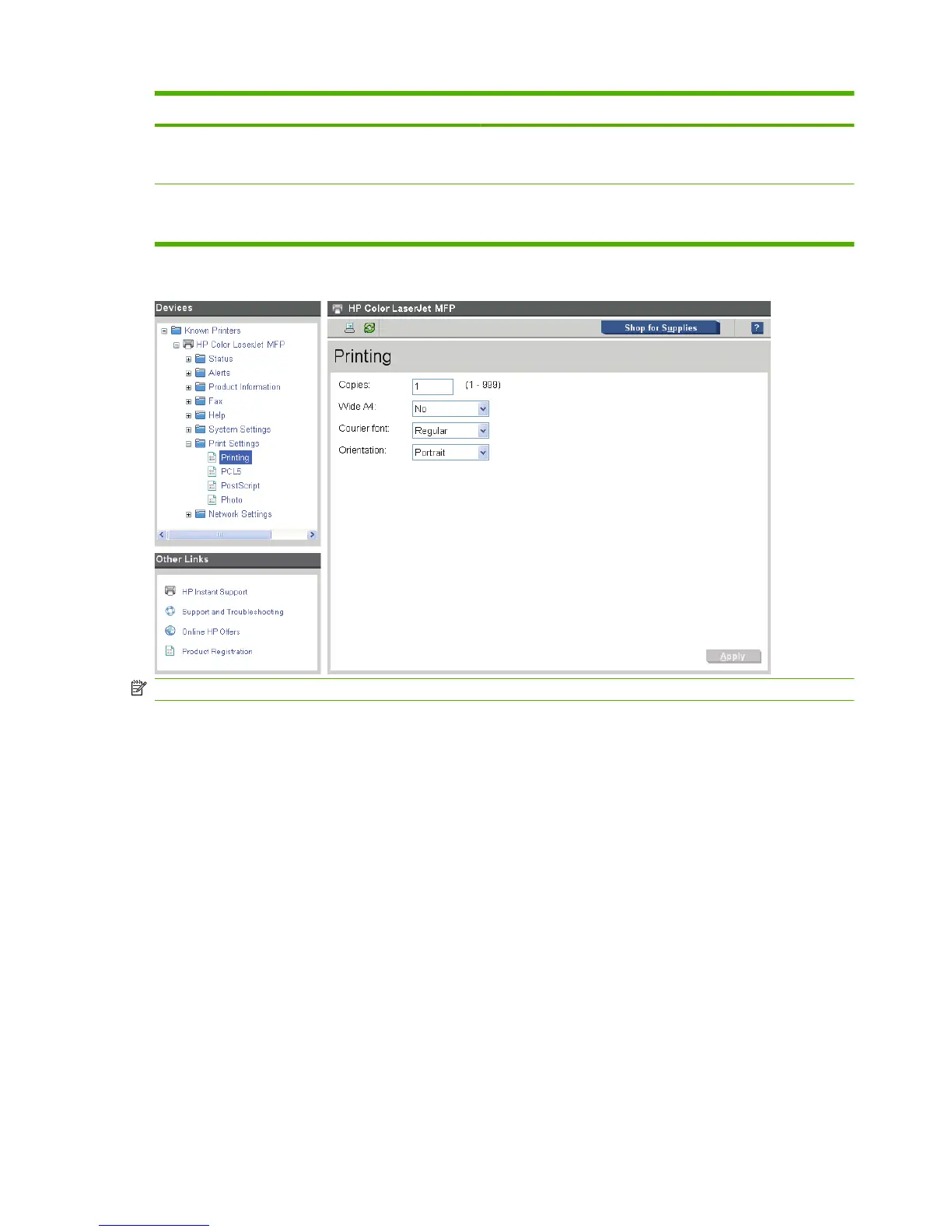 Figure 2-57 HP Toolbox FX Print Settings folder – Printing pane