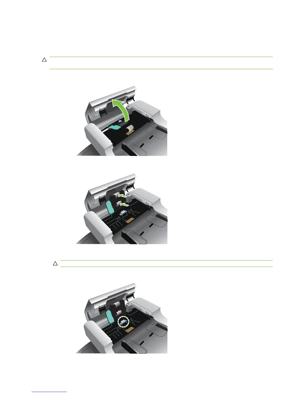 CAUTION: Clean the rollers only if you experience misfeeds or marks on the originals, and you notice