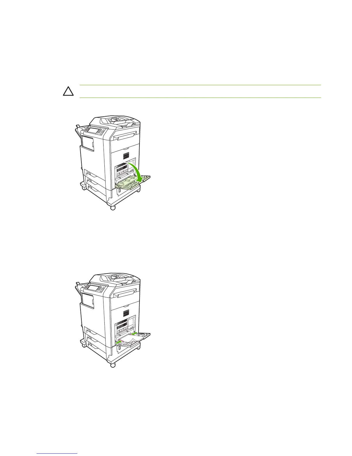 CAUTION To avoid jams, never add or remove media from tray 1 during printing.