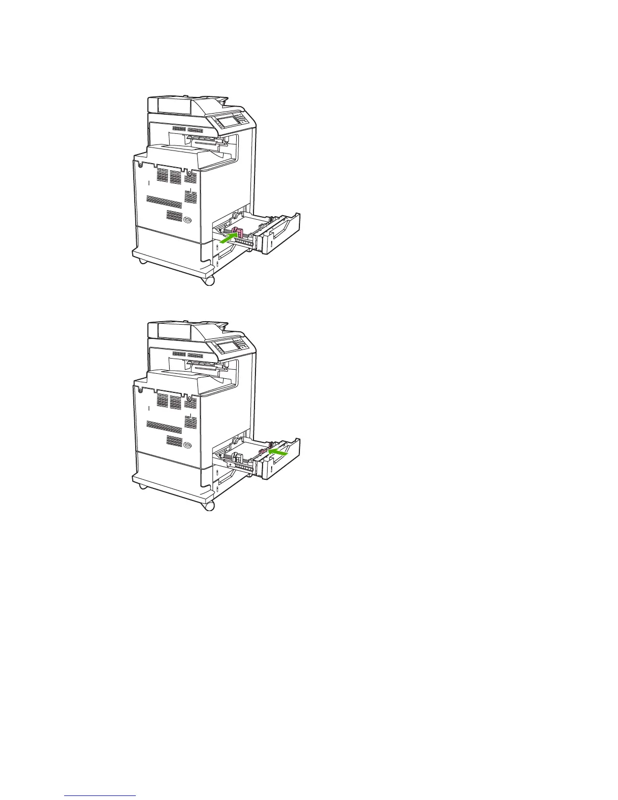 2. Adjust the rear media-length guide by squeezing the guide adjustment latch and sliding the back