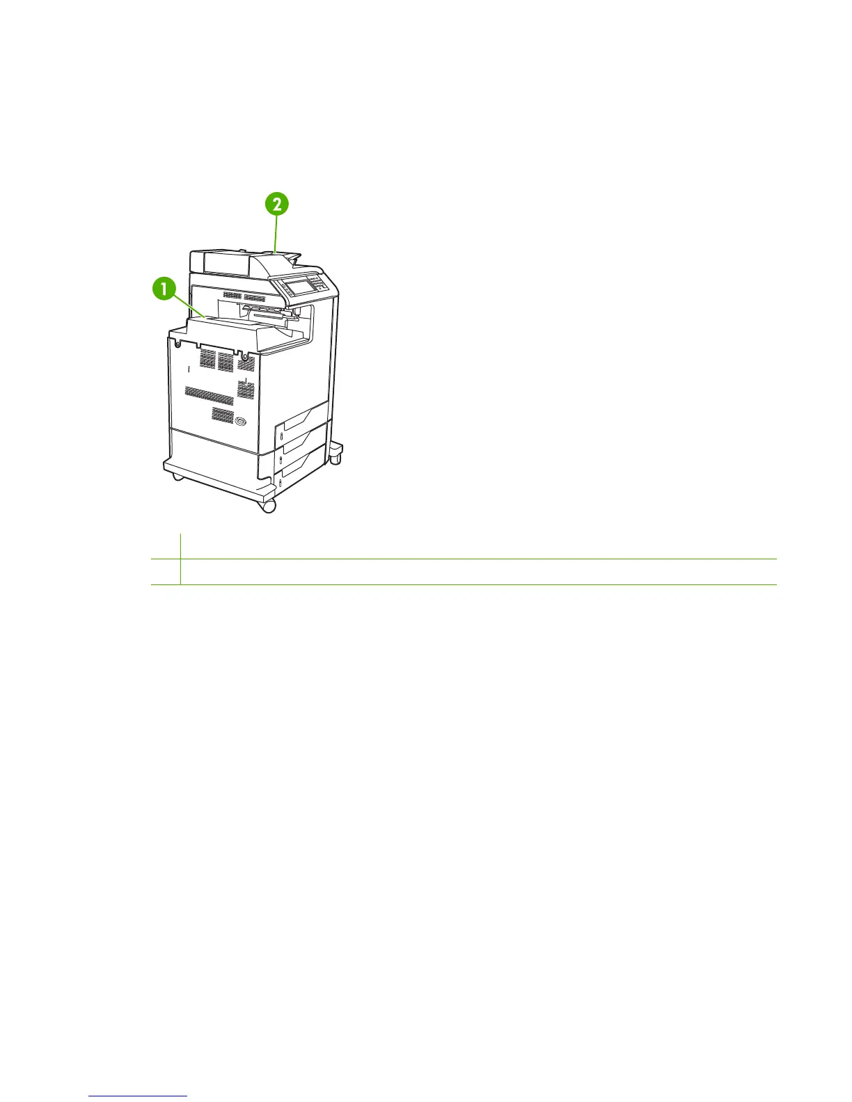The MFP has an ADF output bin and the standard output bin for printed pages.