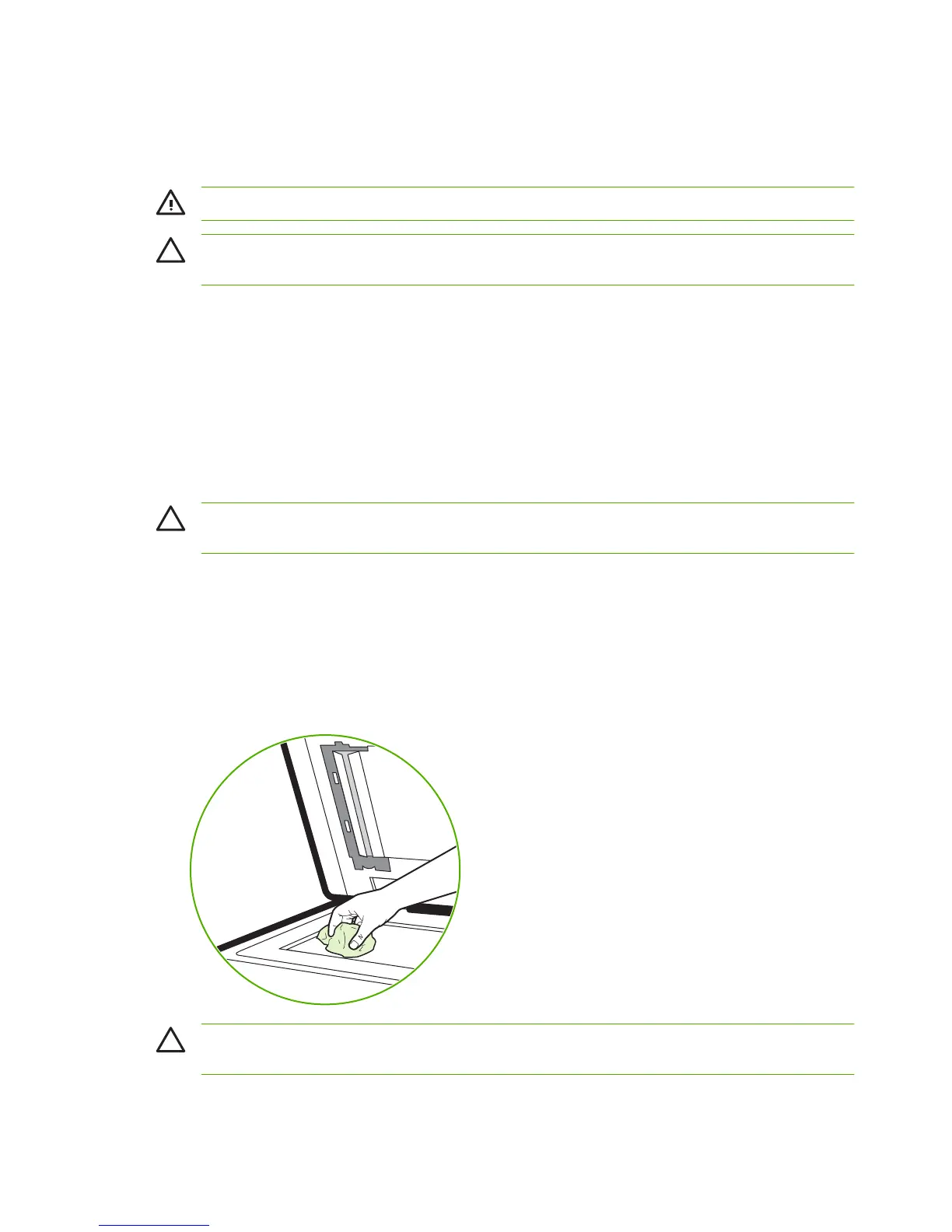 CAUTION Do not pour or spray liquids directly onto the scanner glass. Do not press hard on
