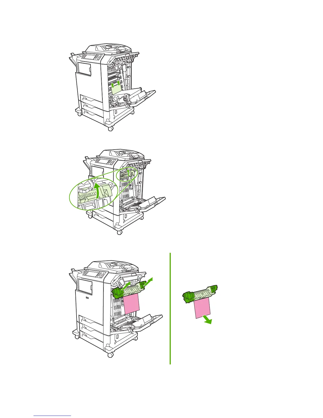 8. Grasp the purple handles and pull the fuser out. Remove any paper.