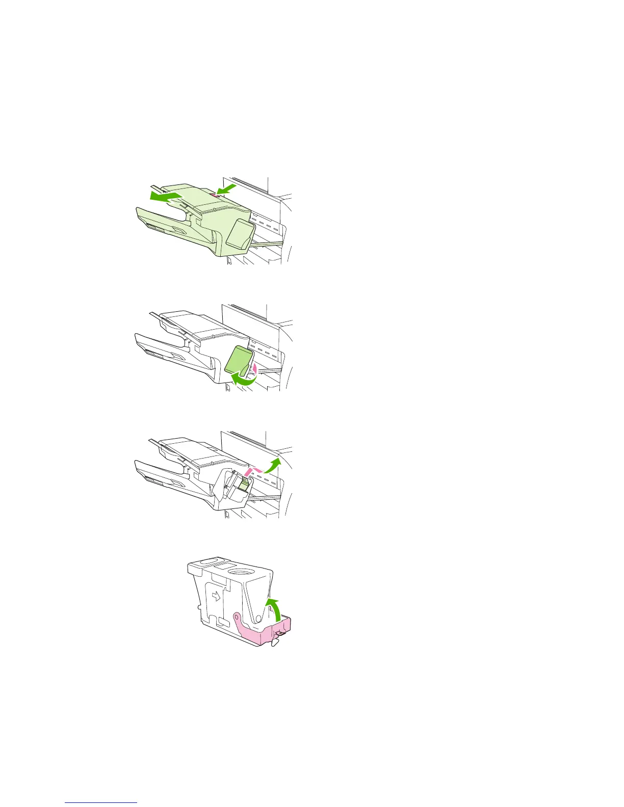 4. To remove the staple cartridge, pull up on the green handle and pull out the staple cartridge.