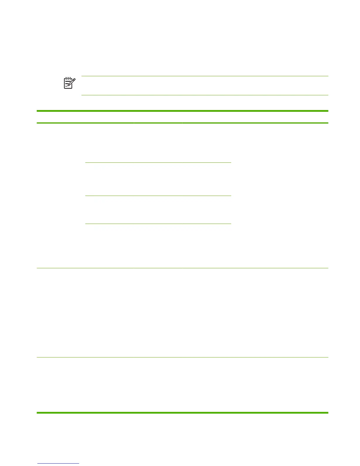 NOTE Values shown with "(default)" are the factory-default values. Some menu items have no
