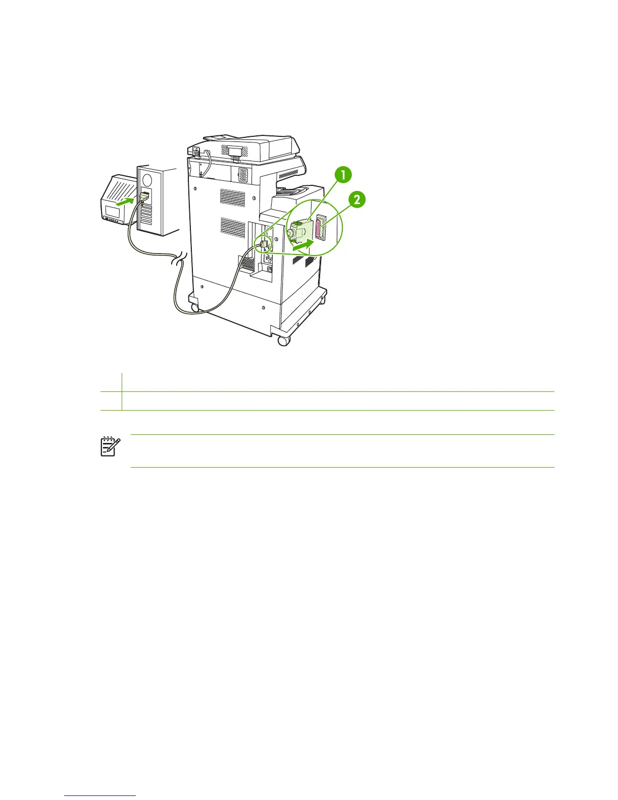 Establish a parallel connection by connecting the MFP to the computer with a bidirectional parallel cable