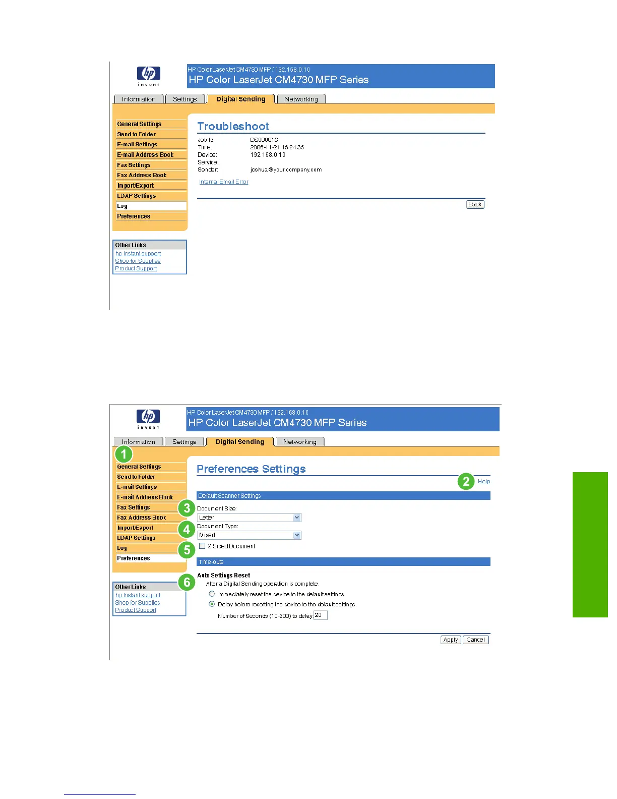 Use the Preferences Settings screen to configure general settings for the digital-sending features. The