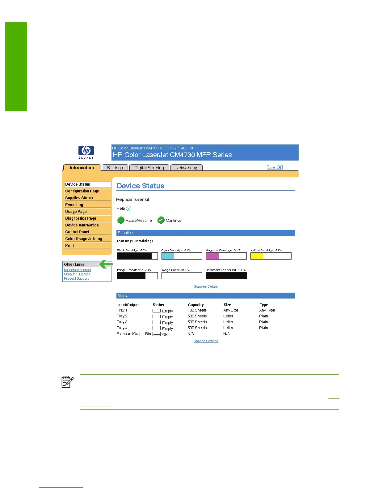 information, such as interactive troubleshooting and ordering information for genuine HP supplies.