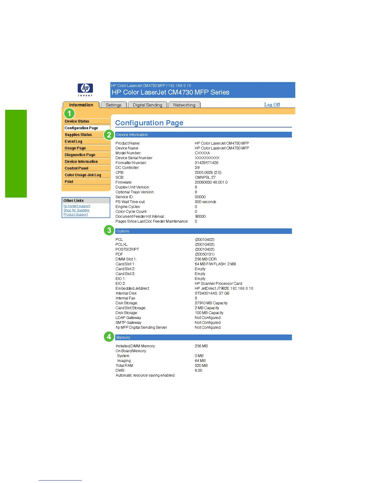 10 Chapter 2 Viewing product status from the HP EWS Information screens ENWW