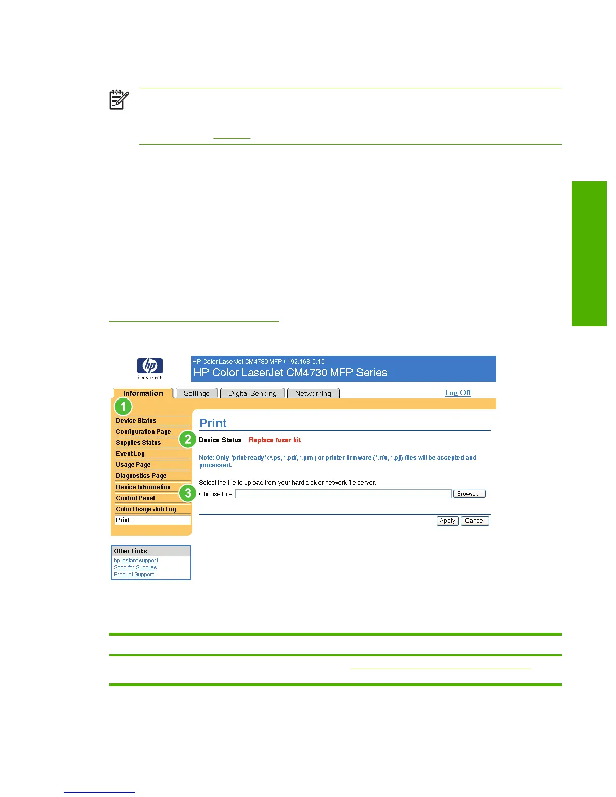 You can use the Print screen to print one file at a time from a product that supports the HP EWS. This