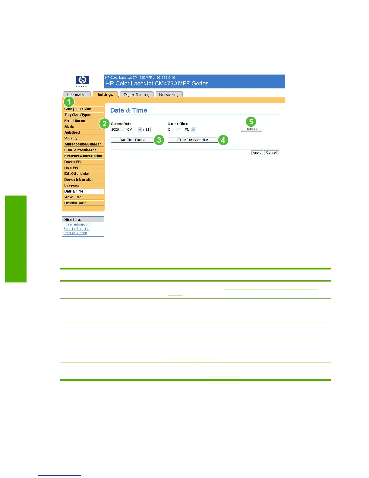 Use the Date & Time screen to update the product time. The following illustration and table describe