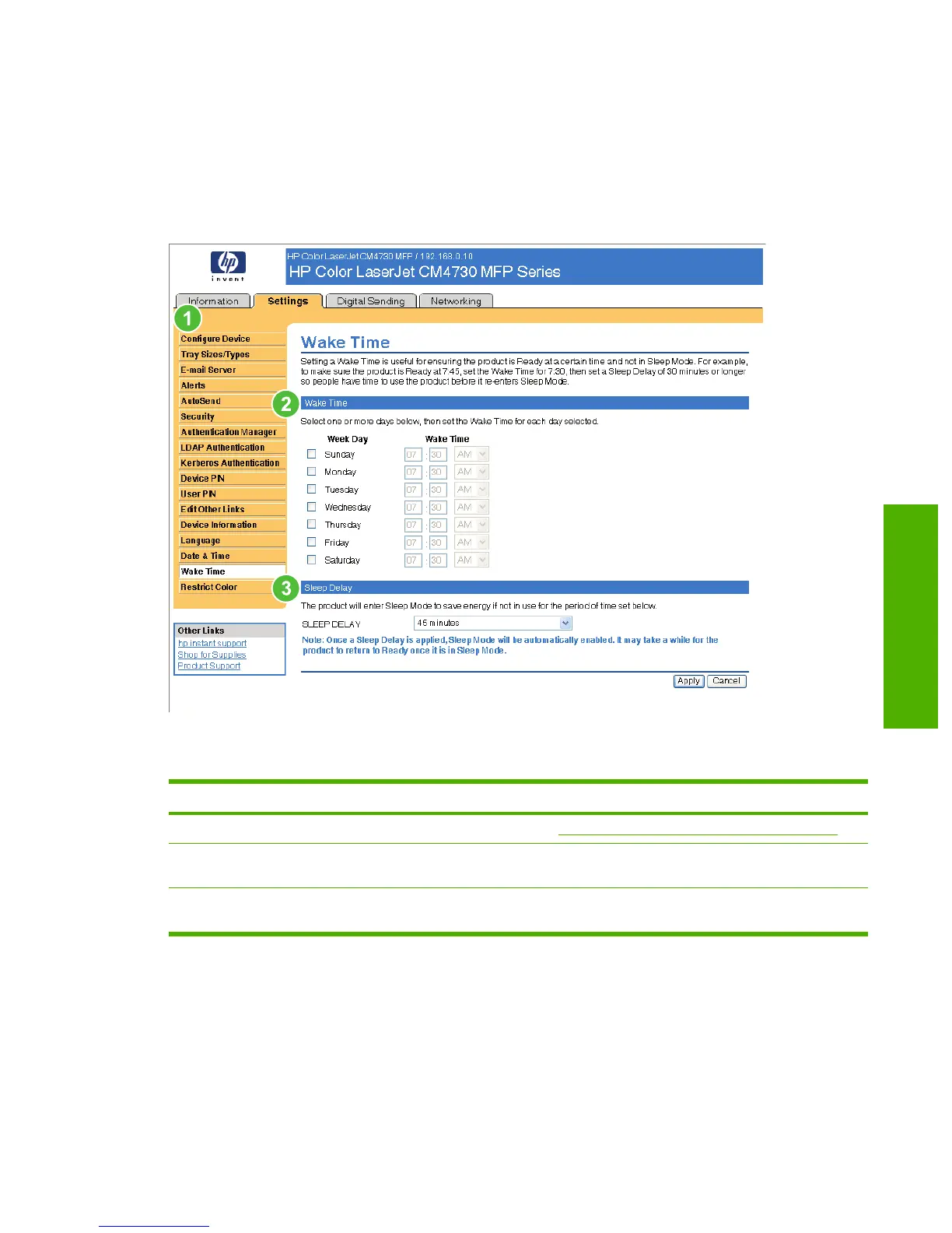 An IT administrator can use the Wake Time screen to schedule product wakeups on a daily basis. For