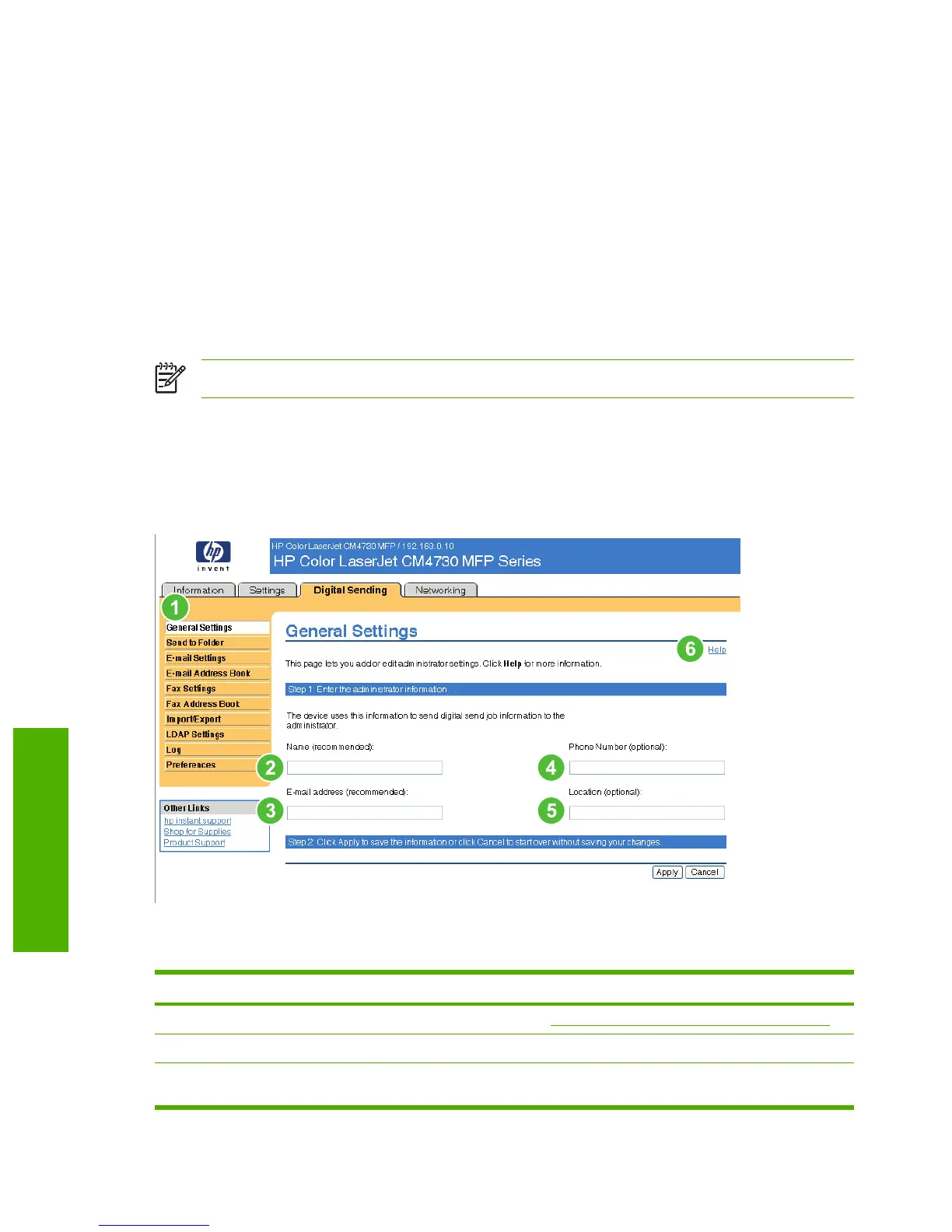 3 E-mail address Type the administrator's e-mail address. The device does not accept e-mail