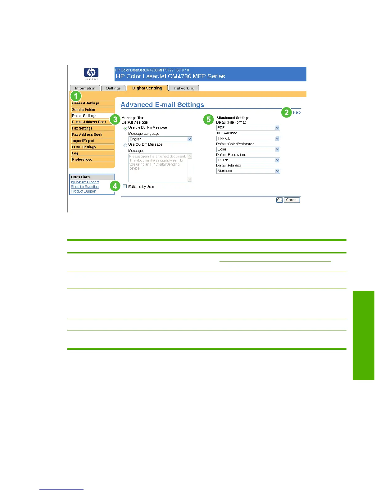5 Attachment Settings Select the default settings for attachments sent in e-mail messages that are sent from