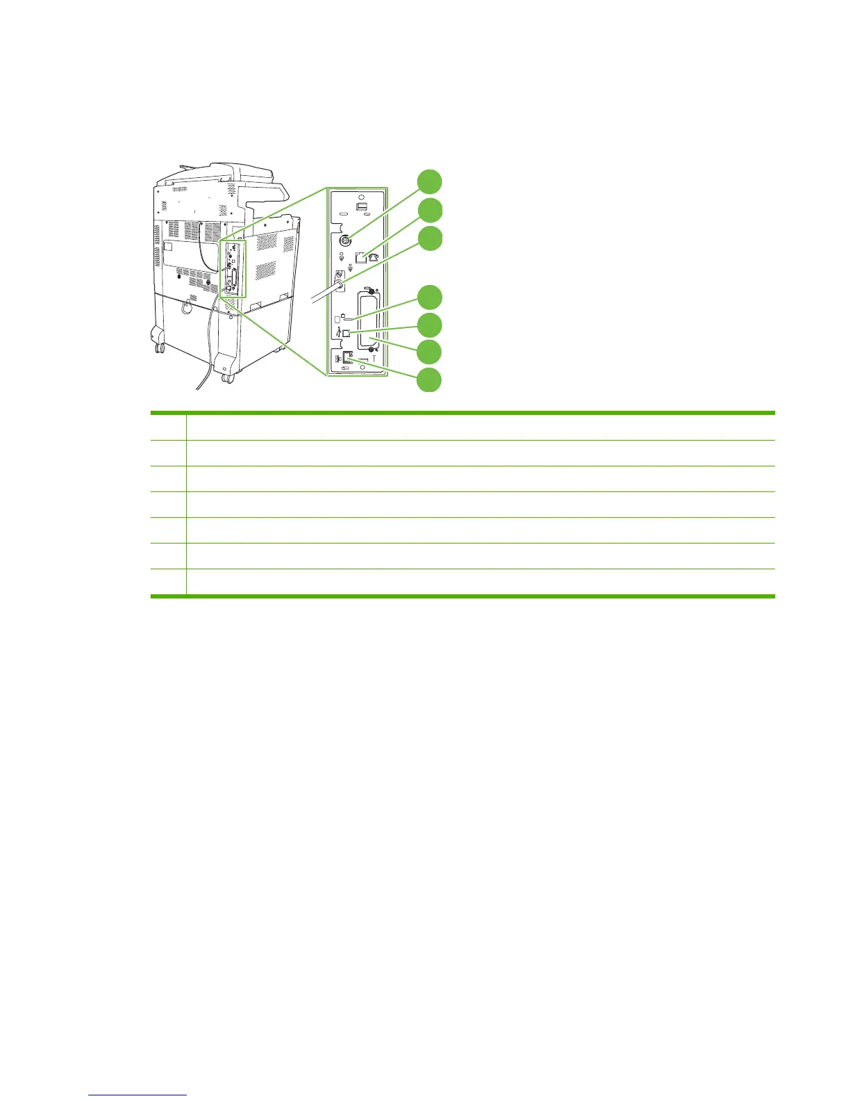 The product has five ports for connecting to a computer or a network. The ports are at the left, rear