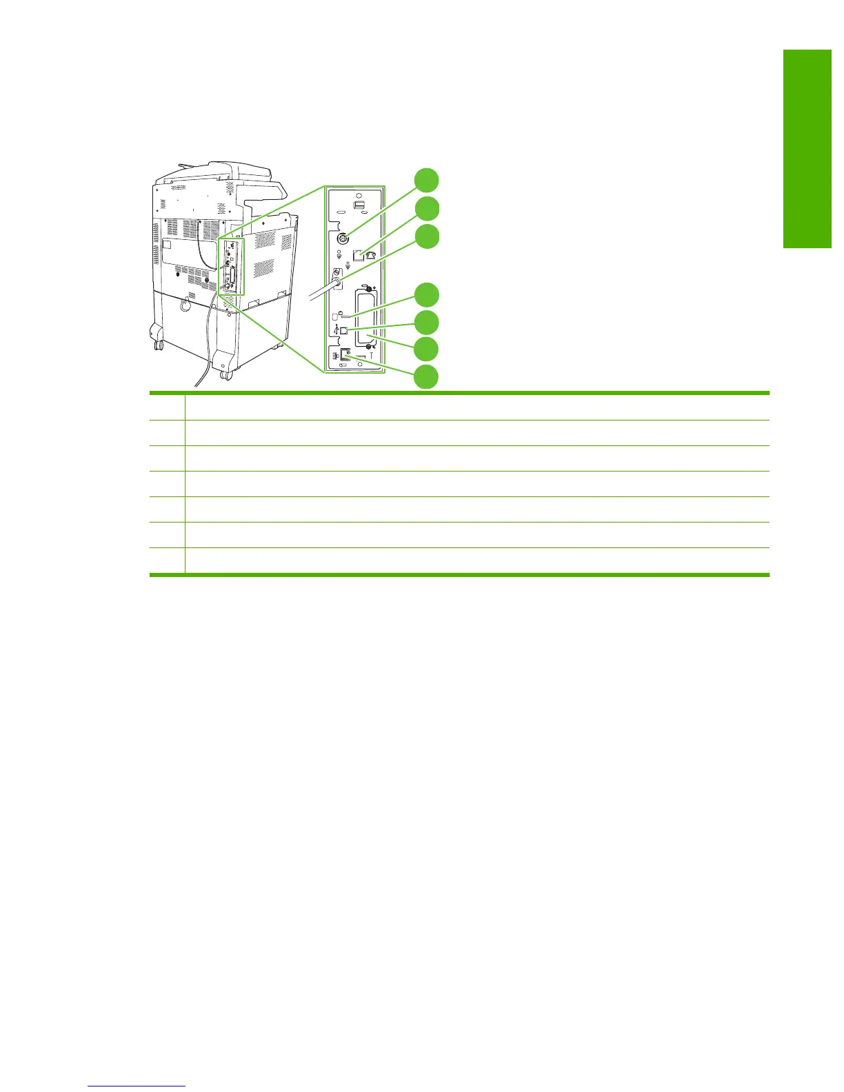 The product has five ports for connecting to a computer or a network. The ports are at the left, rear