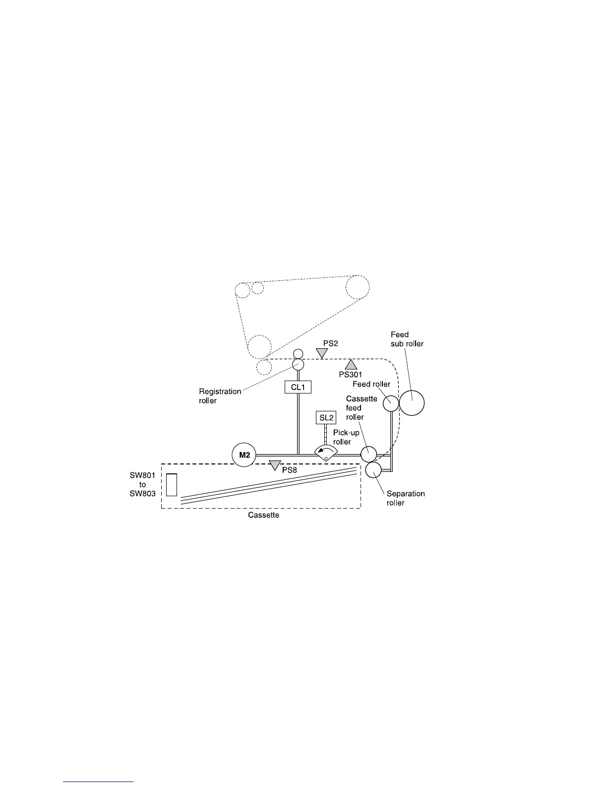 (SW801, SW802, and SW803) detect both the paper size and the presence of a cassette.