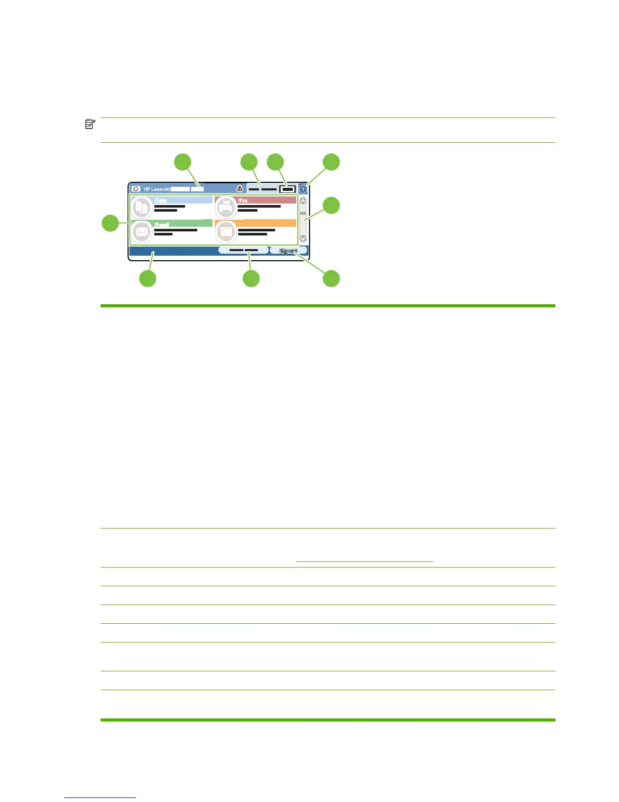 NOTE: Depending on how the product has been configured, the features that appear on the home