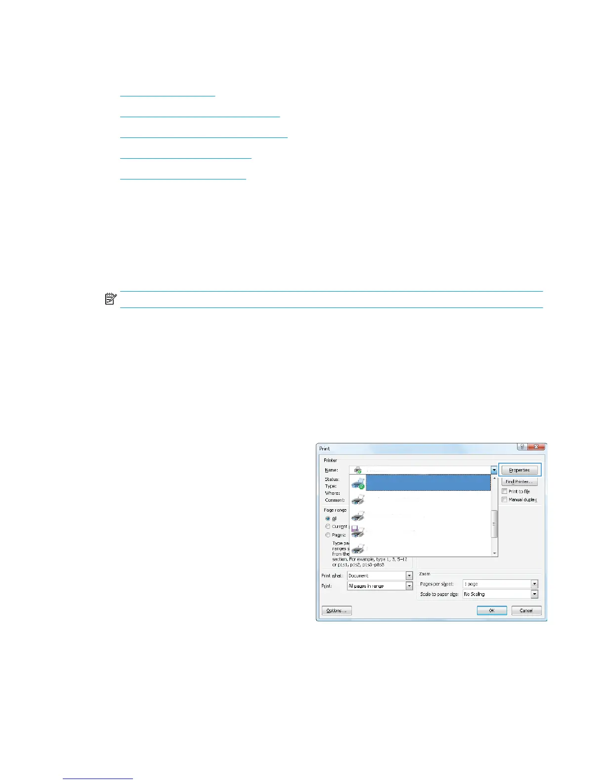 tap the Properties or Preferences button to open the print